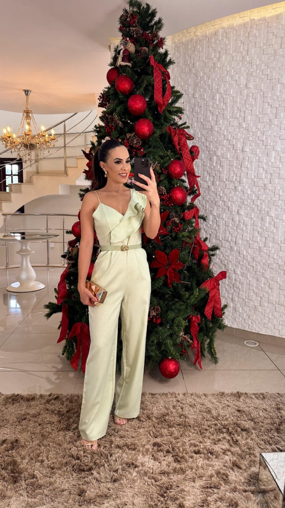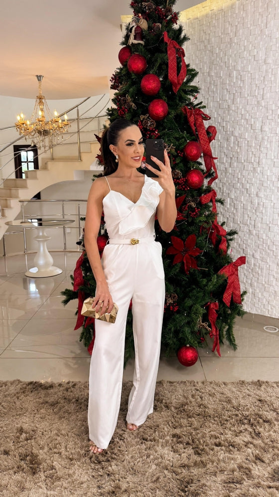 O Macacão Nivia é a escolha ideal para quem busca elegância e conforto. Com um charmoso detalhe de alça em babado, ele traz delicadeza ao visual. Possui bolsos laterais para maior praticidade, fechamento em zíper nas costas e acompanha um cinto para ajustar e valorizar a silhueta. Sua modelagem pantalona garante um caimento perfeito para qualquer ocasião.