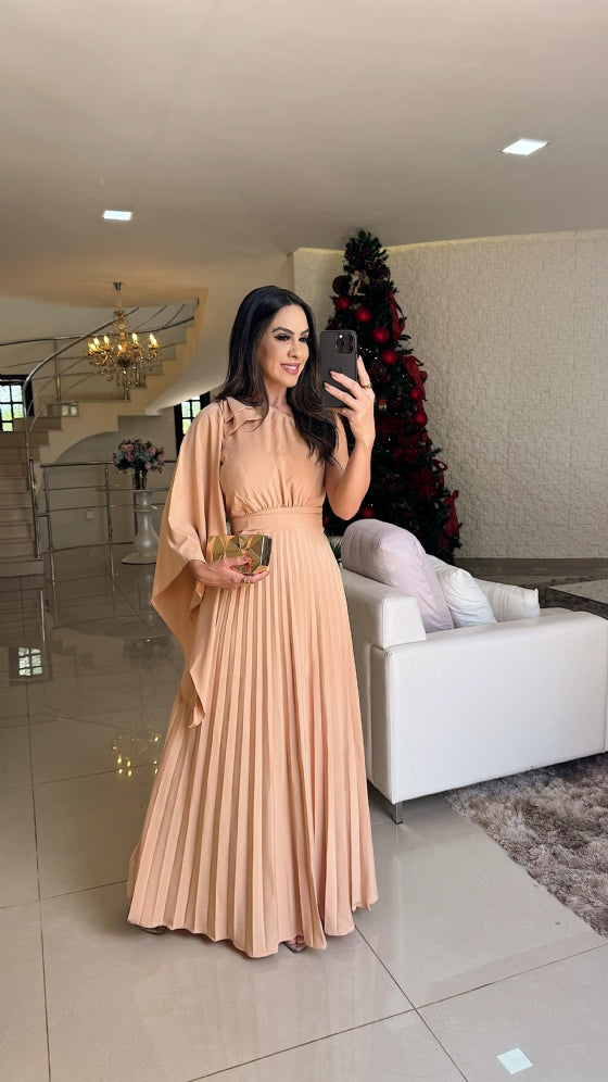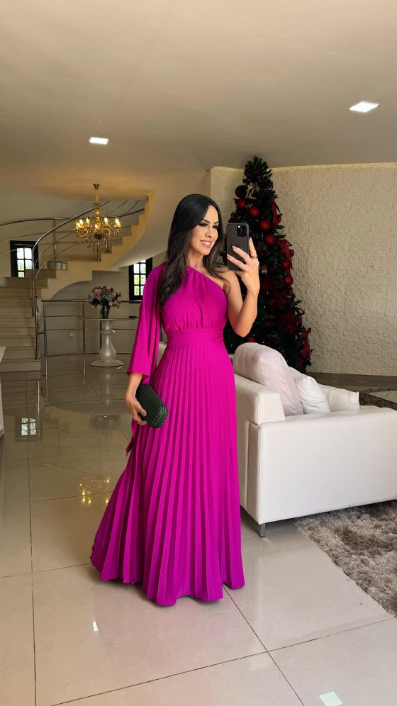 O Vestido Heloa é a definição de sofisticação e estilo. Com um design de um ombro só, ele se destaca pelo charme e elegância. Os detalhes de plissado adicionam textura e movimento, enquanto o bojo embutido e o lastex nas costas garantem conforto e ajuste impecável. Um verdadeiro sonho de vestido para ocasiões especiais!